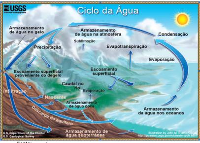 A água é um bem comuma todas as pessoas e indispensável a todas as formas de via que estão dispersasao decorrer da extensão da crosta terrestre. As águas contidas no planetaconstituíam a hidrosfera e essa corresponde à parte líquida que se encontra emdiversas partes, como oceanos, mares, rios,lagos,geleiras,além da atmosfera. O processo que dáorigem ao ciclo da água ocorre em todos os estados físicos (líquido, sólido egasoso) para conceber esse fenômeno é preciso que outro elemento provoque,nesse caso, é motivada pela energia da irradiação solar. Vamos aprender umpouco mais?
